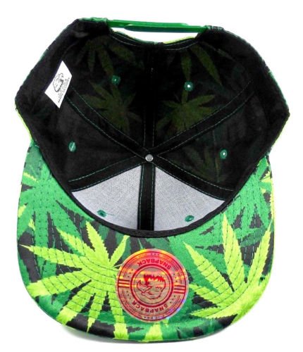 Product DescriptionWeed Leaf Floral Print Snapback Hat. Cap design features Marijuana Leaves printed all over a black background.0