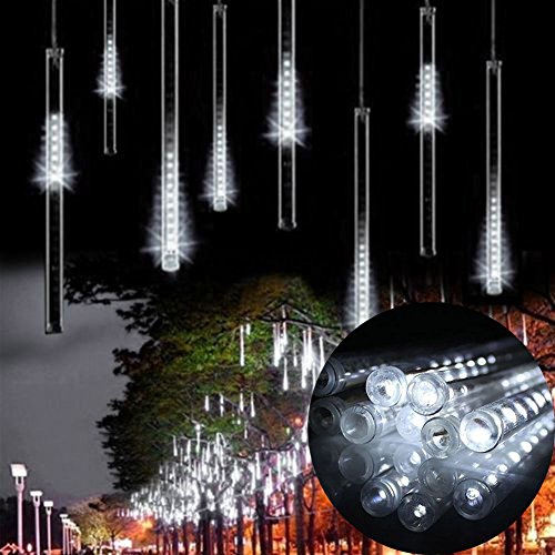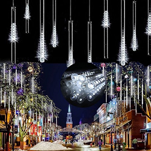 String Lights, LIFU Waterproof Falling Rain Lights With 30CM 8 Tubes 145 LED Meteor Shower Rain LED Christmas Lights for Wedding Party Xmas Tree Indoor Outdoor Patio Decoration (White)