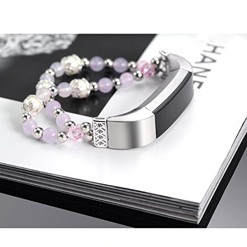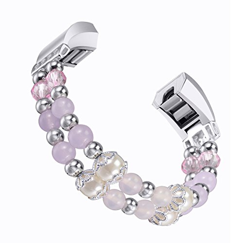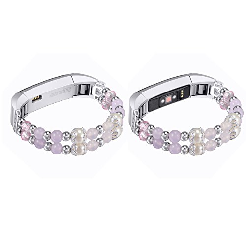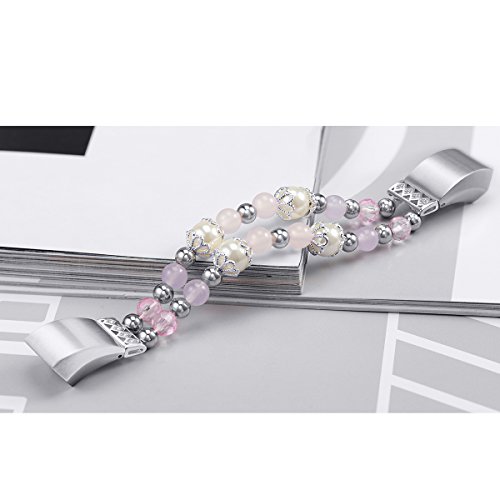 For Fitbit Alta HR and Alta Bands, bayite Pearl Natural Stone Bracelet Bead Replacement Elastic Stretch Strap Women Girls Large Small