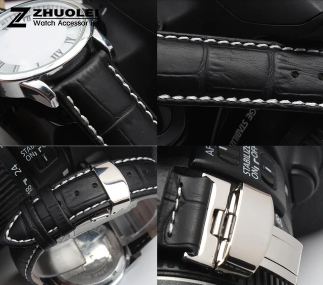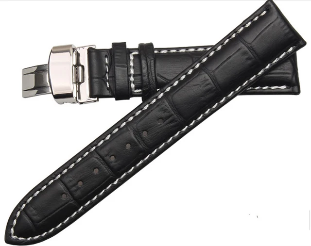 | [해외] 16 미리메터 18 미리메터 19 미리메터 20 미리메터 21 미리메터 22 미리메터 24 미리메터 망 시계 밴드 블랙 정품 가죽 시계 스트랩 나비 배포 걸쇠 |