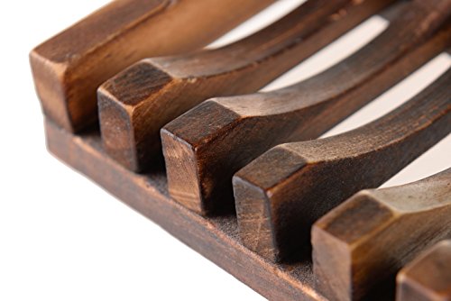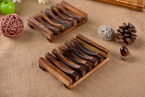 -. Feature : ★ NATURAL&ECO-FRIENDLY: Natural pine of high quality and durable construction provides long lasting quality, no smell weird, and no leave marks on soap from wood stain or chemicals. / ★SLOTTED DESIGN: 6 slotted design drains excess water from soap dish into sink, help soaps drain well between uses and extend life span, no more soft mushy soap and no more soaking wet soap melting in the dish. / ★ DURABLE CONSTRUCTION: Excellent workmanship used staples to hold the slats together so that more solid. Infused with waterproof outer layer varnish, easy to clean and persist, not easy deformation. / ★ USAGE: Suitable for soap, sponge, scouring pad or drain stopper, kitchen, washbasin, bathroom, etc. / ★ COMFORTABLE: More lightweight than other soap dish, antiqued dark brown, Hawaii style, giving it the feel of relax.