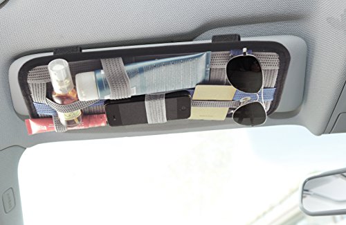 Studio : Admirable Idea Publisher : Admirable Idea Product Description Do you worry that there's no place for your pens, what about your sunglasses, your charging cables, CD, or even your hand mirror and lipstick.... Now you don't need to worried about the storage space of your car. This Car Sun Visor Organizer Pouch Board is a perfect solution for you. It has adjustable back straps, So it applies to the most of cars. The different colors of the anti-skid pouch straps make the board good-looking and practical.