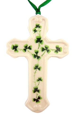 -. Title : Irish Shamrock Cross 4 Inch Porcelain Hanging Christmas Tree Ornament