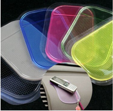 -. Feature : Size: 14 x 8.5cm / Color:Blue, yellow,red,purple,green,black,white (we will send random) / Anti-slip mat, clings to your dashboard or center console and clings to anything that's placed on it. your cell phone, sunglasses or anything that's placed on the Sticky Mat will not slide off. / No adhesive or magnet needed and can be place in your car, truck, SUV, boat or airplane / Note: This pad is compatible with soft vinyl surfaces. Avoid use on surfaces that have a lacquered finish (i.e. wood and some leather). Also avoid use on cars with hard or painted plastic dashes