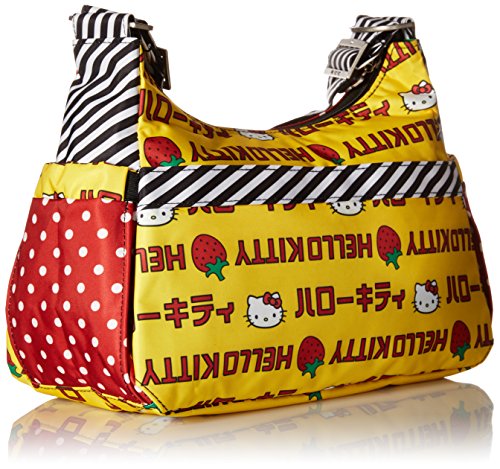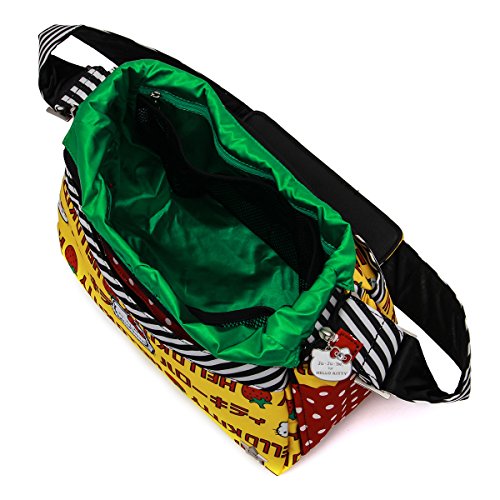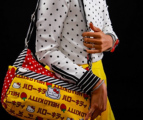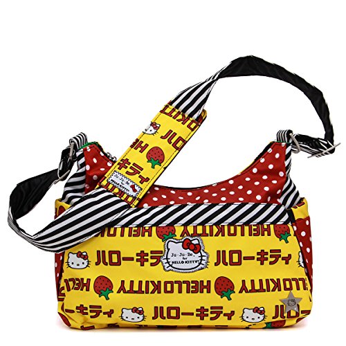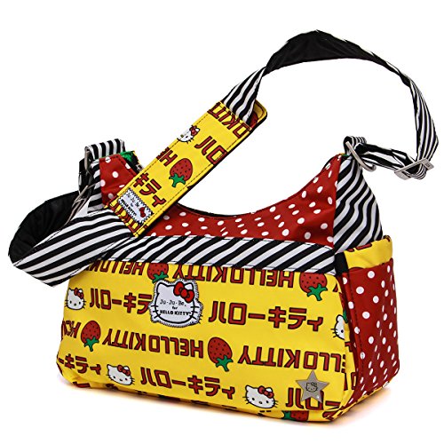 The Ju-Ju-Be Hello Kitty Collection HoboBe Purse Diaper Bag is chic, smart and functional with added innovation and versatility. Packs up great for baby, the HoboBe Diaper Bag looks like a fashionable purse but has all the same features as an ordinary diaper bag. When you’re ready, take out the included memory foam changing pad for a full-fledged purse. How’s that for flexible and fun? Be yourself and more with the HoboBe. The inner lining is protected with Agion natural antimicrobial treatment, which inhibits and reduces the growth of odor-causing bacteria, mold and mildew. The outer fabric is treated with Teflon fabric protector so you can repel stains and keep your Hobo Be clean. The front "mommy" zippered pocket is large enough for smartphones, wallets, keys and other personal items. The main zipper pocket is large enough for diapers, wipes, soft toys and other items for quick trips. The back pocket is perfect for magazines or books. (2) bottle pockets are located on either side of the bag and insulated to keep your items hot or cold. The adjustable memory foam shoulder strap has textured fabric underneath to prevent the bag from sliding off your shoulder. This bag is machine washable and measures 13.5-inches by 9.5-inches by 5.5-inches in size. The Strawberry Stripes print is a vibrant multicolored pattern with green lining. The print is accented by silver colored hardware, metal hardware, including luggage feet to keep the bottom of your bag clean when you set it down. All Ju-Ju-Be Bags come with a Lifetime Limited Warranty against manufacturing defects when purchased from an Authorized Ju-Ju-Be Dealer. Authorized Dealers can be found in the images. Founded in 2005, Ju-Ju-Be is a Southern California company that uses science, style, and attitude to create diaper bags, purses and other fashionable accessories. Ju-Ju-Be assimilated the most advanced technology possible to create a stylish and intelligent product line that's unrivaled in the industry.Feature