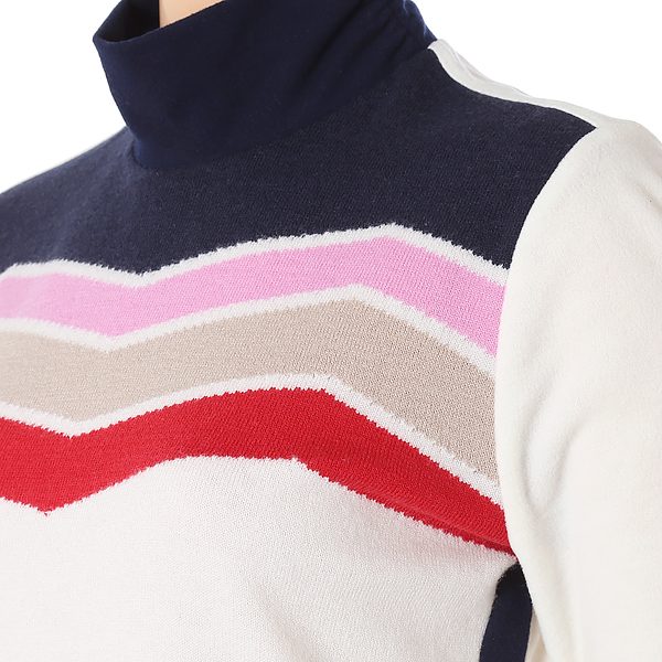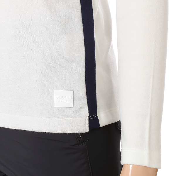 몸판 앞부분을 겨울 시즌패턴으로 편직한 니트소재로 믹스한 티셔츠.