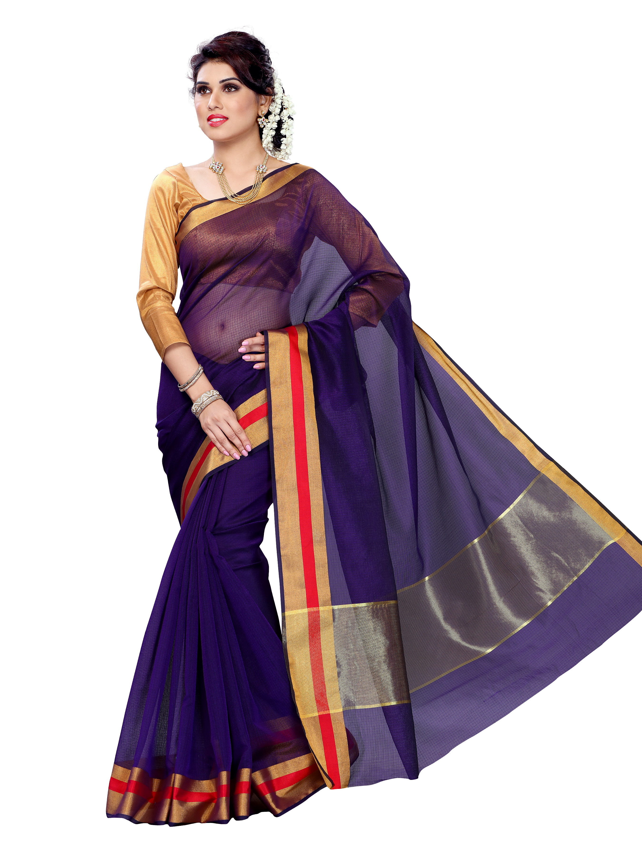 ETHNIC BRIDAL DESIGNER Woven Kanjivaram Cotton Saree Voilet Sari With Blouse