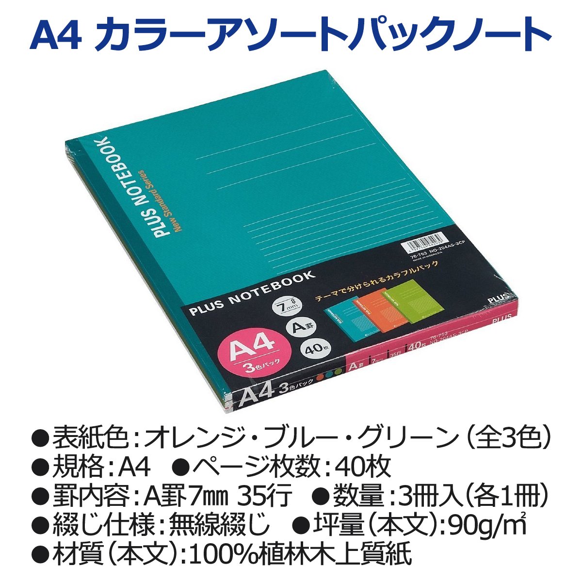 40 pieces NO-204AS-3CP 76753 A4 A ruled notebook plus three books Assorted color pack (japan import)