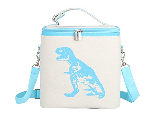 Women's Linen Cotton Printed Car Insulation Cooler Bag Kid's Zipper Lunch Tote Bag(Blue Dinosaur)