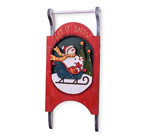 Red Let it Snow Snowman Vintage Look Sled 18 x 8 Wood Christmas Decoration