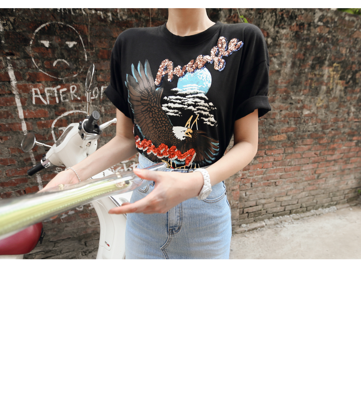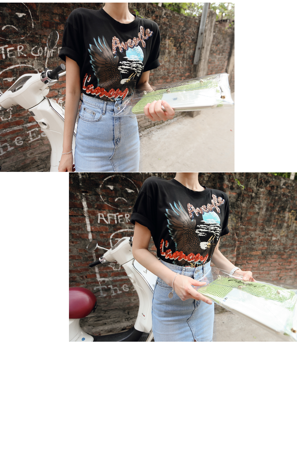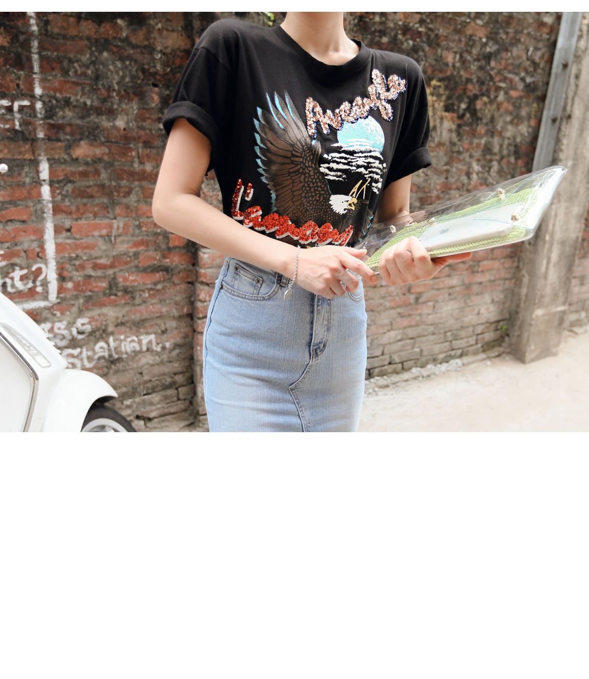 네추럴한 올 풀림과 언발란스한 레터링이 포인트가 되어준답니다