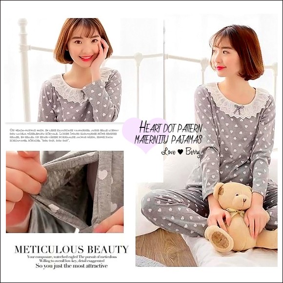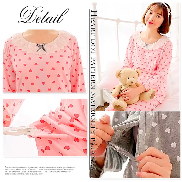 ハートドット柄が可愛い長袖パジャマは入院時にもおすすめ☆