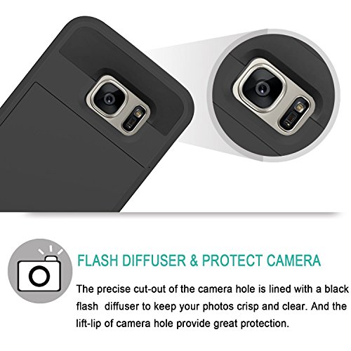 -. Feature : Compatibility: Compatible with Samsung Galaxy S7, not fit Galaxy S7 Edge / Front Protection: The front has a 0.75mm raised lip special design for protecting display screen from flat surface, leaving the display clean and scratch-free / Sliding Card Slot: Card storage up to 3 cards (ID/credit card/cash) and the soft inner ling keep your cards from scratching / Perfect Fit: Slim fitting, lightweight and allows convenient access to all functions, cameras, buttons and ports / Package: All our products are packed with retail package which can be protected the case well