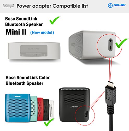 Feature : T-Power (TM) Made with the highest quality (( Extra Long 6.6ft cable cord )) Total Cord Length Is Extended to 6.6 ft (Competitor's Products are 3-4 Ft)! / Brand-new Input Volt Range: 100-240V / Input:12-24V 1000mA; Output:DC 5V 2a ( 2amp ) / MONEY BACK GUARANTEE !! We Will Happily Accept The Return and Give You Your Money Back. 60 Days Money Back Guarantee !! We focus on providing quality power products and excellent customer service / we will ship your order the within-24 hours (Phone service is available) / (NOTE !!!!! THIS ITEM WILL NOT FIT for Mini 1) / Compatibility: Bose-SoundLink Color-Mini 2 II Power-Cord: 627840, 725192 Bluetooth Portable Speaker / Bose SoundLink Color Bluetooth Portable Speaker 627840-1110, 627840-1210, 627840-1410, 627840-1510, 627840-1610 .Bose SoundLink Mini II 725192-1110, 725192-1310 (NOT for Bose SoundLink Mini I 359037)