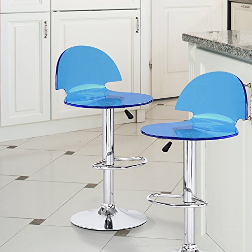 -. Title : Asense Blue High Adjustable Clear/transparent Acrylic Hydraulic Lift Barstool Chair(set of Two)