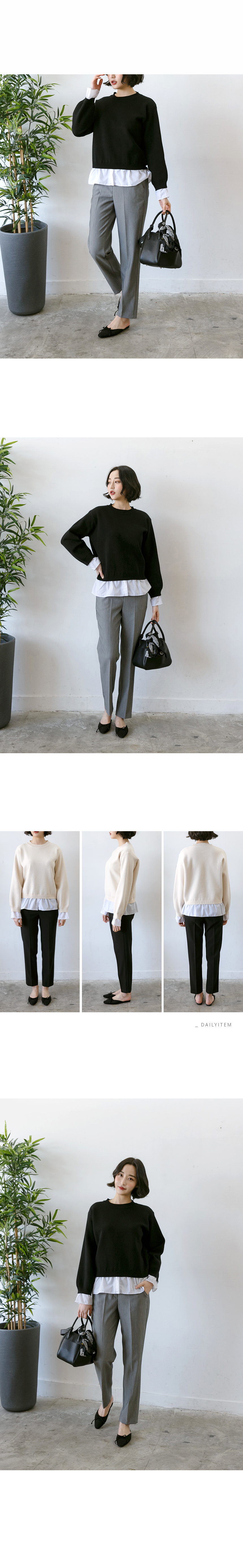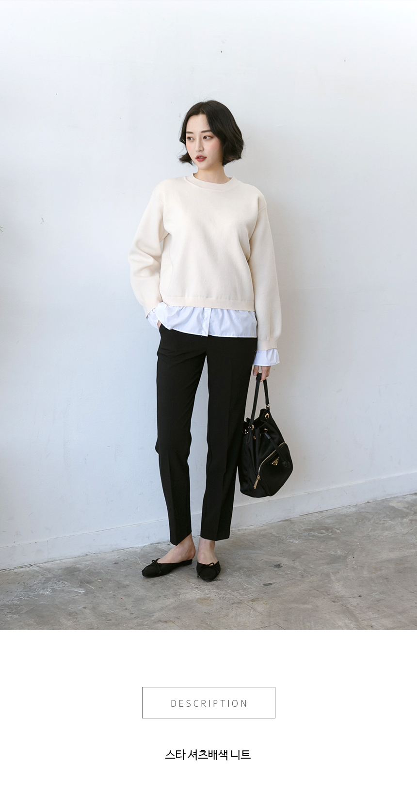 산뜻한 길이감의 니트로 다리가 길어 보이는 효과를 주는 상의로 밑단에 배색이 들어가 부 담 없이 코디하기 좋으면서도 시선을 위로 올려줘 프로포션이 좋아 보이는 아이템이에요!