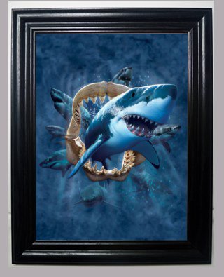 SHARK 3D FRAMED Wall Art--Lenticular Technology Causes The Artwork To Have Depth and Move-HOLOGRAM Style Images-HOLOGRAPHIC Optical Illusions By THOSE FLIPPING PICTURES