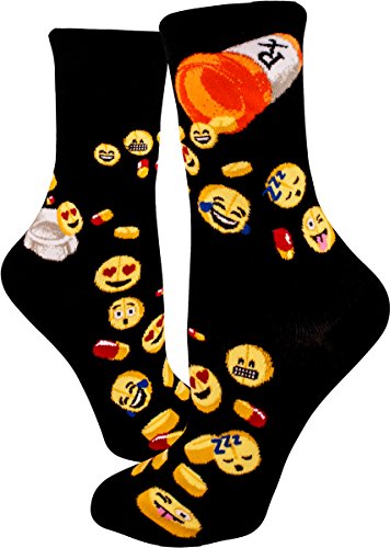 Binding : Apparel Product Description The Socks You've Been Missing! If nothing makes you happier than finding the perfect emoji for every situation, these emoji medicine socks might be the cure for your sad sock drawer. Laughter is the best medicine, and these emoji pill socks are the best socks to cheer you up. Put on a pair and text a pic to your bestie ? with plenty of emojis, of course! ModSocks also offers Men's Happy Pills Crew Socks, so you can match your man! 0 |
