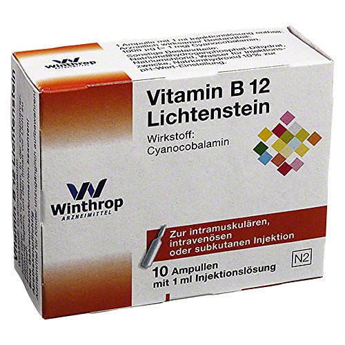 -. Binding : Badartikel -. Brand : Zentiva Pharma GmbH -. EAN : 4150061742961 -. Feature : PZN-06174296 / 10 ml Ampullen / apothekenpflichtig / Zu Risiken und Nebenwirkungen lesen Sie die Packungsbeilage und fragen Sie Ihren Arzt oder Apotheker. / Dieses Produkt darf nicht an Personen unter dem gesetzlichen Mindestalter abgegeben werden. -. IsAdultProduct : 0 -. Label : Zentiva Pharma GmbH -. LegalDisclaimer : Zu Risiken und Nebenwirkungen fragen Sie Ihren Arzt oder Apotheker. -. Manufacturer : Zentiva Pharma GmbH -. PackageQuantity : 1 -. ProductGroup : Drogerie & Körperpflege -. ProductTypeName : HEALTH_PERSONAL_CARE -. Publisher : Zentiva Pharma GmbH -. Studio : Zentiva Pharma GmbH -. Title : VITAMIN B12 1000UG LICHTEN, 10X1 ml