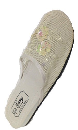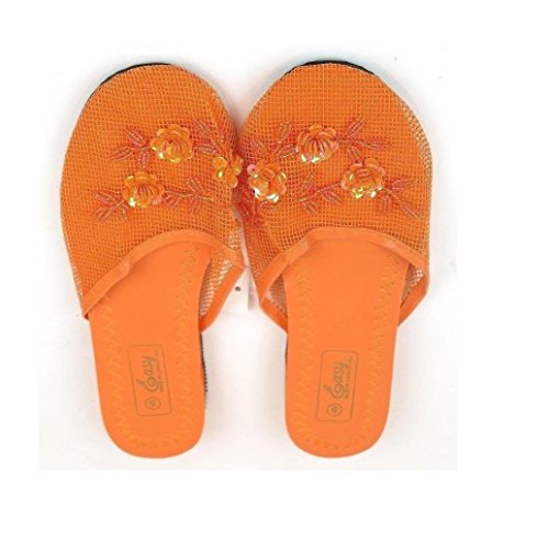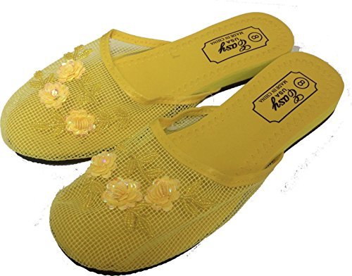 Binding : Apparel Product Description The hottest, trendiest Chinese Mesh Slippers are here. These Asian mesh mules are great for any time of year, indoors or out. Great for the beach! Adorned with beads and sequins, arranged as orchids, your feet will literally twinkle and sparkle with every step. Plastic mesh allows the feet to breathe comfortably. Flat, slip-proof rubber soles. Women sizes. These mesh sandals/slippers is what everyone is buying and looking for. Makes a great gift! Get some for your friends and family today! 0