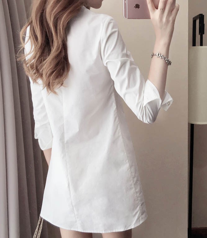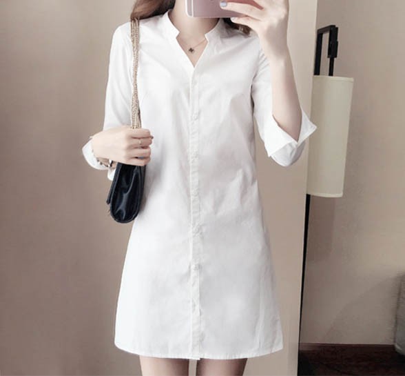 【入荷後営業日2,3日以内出荷予定 通関待ちや不良により出荷遅くなる場合はメールにてご連絡いたします。メール受信設定によっては正常に受信されない場合はございますので、 弊社からのメールを予め受信頂くようご設定くださいませ。】 シャツ シャツワンピ ミニワンピース ミニ丈 Vネック きれいめ ホワイト 白 ボタン レディス レディース 春 新作Vネックレディースシャツ◆サイズ:M着丈75肩幅37袖丈55胸囲84L着丈76肩幅38袖丈56胸囲88XL着丈77肩幅39袖丈57胸囲922XL着丈78肩幅40袖丈58胸囲96◆素材:コットン70%+ポリエステル30%