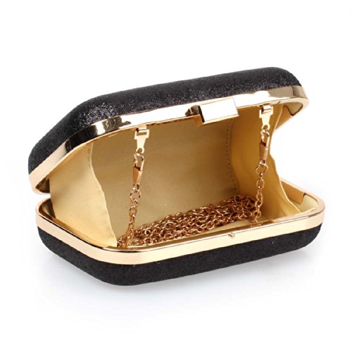 BMC Iridescent Onyx Black Glitter Covered Fabric Hard Case Alloy Chain Strap Fashion Evening Clutch