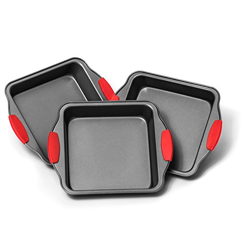 - Premium 3 Piece Square Baking Pan set with ultra non-stick coating and innovative design. Baked goods effortlessly slide off these baking pans. Cleaning is quick and easy even with sticky baked goods. Dishwasher safe. Built to last a lifetime.