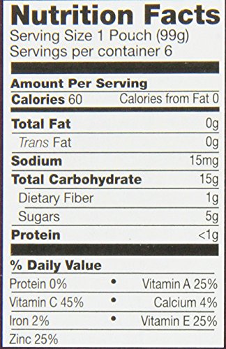 -. Feature : For babies 6 months and older / 25% daily value for vitamins A, E & Zinc, 45% daily value for vitamin C / No artificial flavors, colors or preservatives / USDA Organic certified / Convenient, squeezable, resealable, non-BPA package; serve within 24 hours of opening