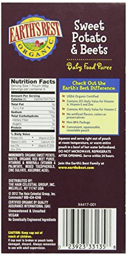-. Title : Earth's Best Organic Stage 2, Sweet Potato & Beets, 3.5 Ounce Pouch (Pack of 12)