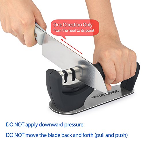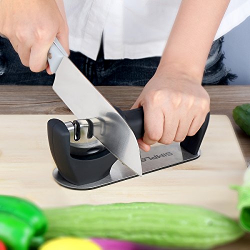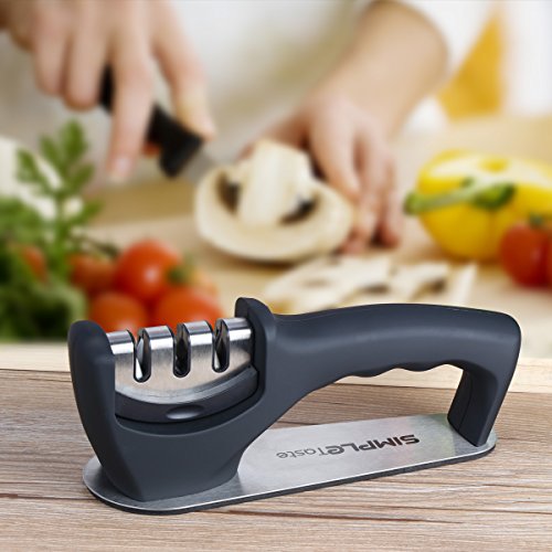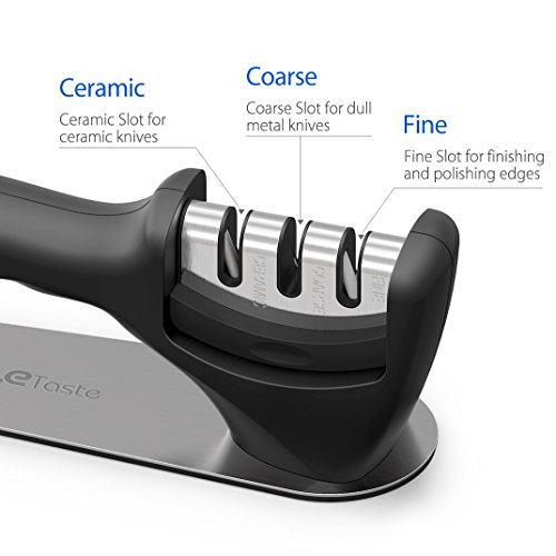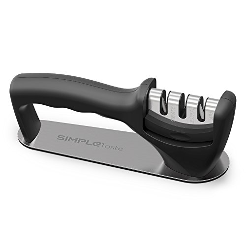 SimpleTaste 3-Stage Sharpening System Knife Sharpener Sharpens Ceramic & Steel, Safety Conscious Handle, Black