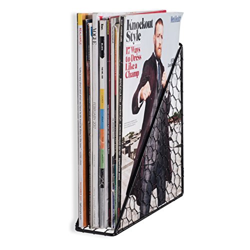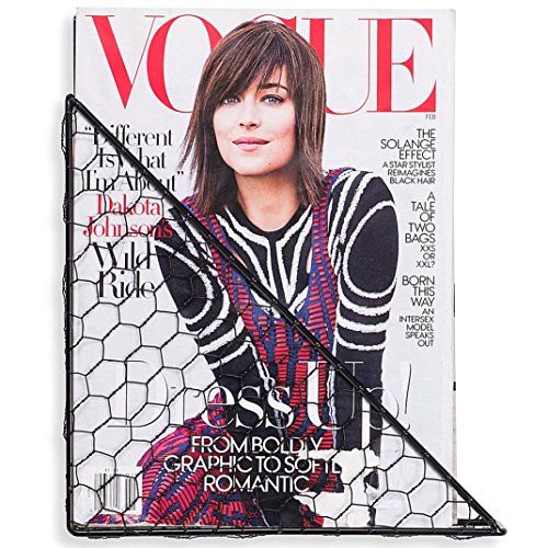 WALL35 Compact Triangle Shaped Playful Magazine Rack Chicken Wire Metal Black