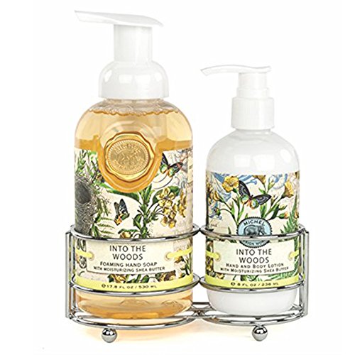 Everything wonderful is best served up in twos. Rich hand lotion and cleansing foaming hand soap are paired together in a simple and convenient silver caddy sure to fit in any bath or kitchen. Michel Design Works was created by Bruce & Deborah Michel in the early 1980s. The first product was an elaborate "memory book" called Our Country Diary. Still a favorite today, it is filled with vintage artwork, quirky quotes, notable dates and plenty of room to record all the events of the year. Our Country Diary will become a beautiful record of your family life. When they first created their signature elephant logo, it signified a remembrance of all things special. Although Michel Design Works has greatly expanded into bath & body, home fragrance and decor, when Bruce & Deborah remember and celebrate all of their wonderful customers and the company's history, it is even more fitting today! Whether you are a new or a long-time friend, we welcome you to enjoy the art, lather up with our English soaps, set an elegant table with napkins, candles, plates, and serveware, and end your day with wonderfully fragrant bubble bath.Feature