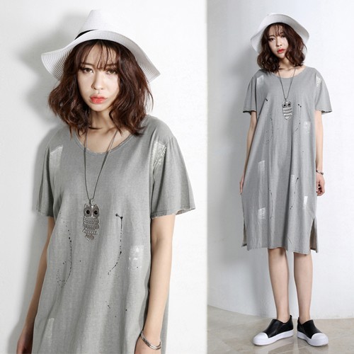 商品名:ワンピース レディース 半袖 膝丈 無地 春 2017 モード系 個性的 40代 ファッション