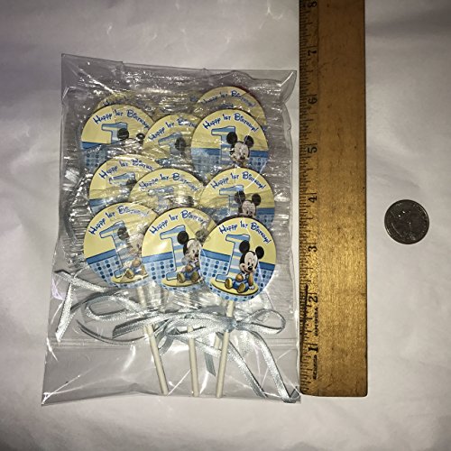 Baby Mickey Mouse 1st Birthday Lollipops Party Favors Supplies Decorations w/ Baby Blue Ribbon Favor -12 pieces
