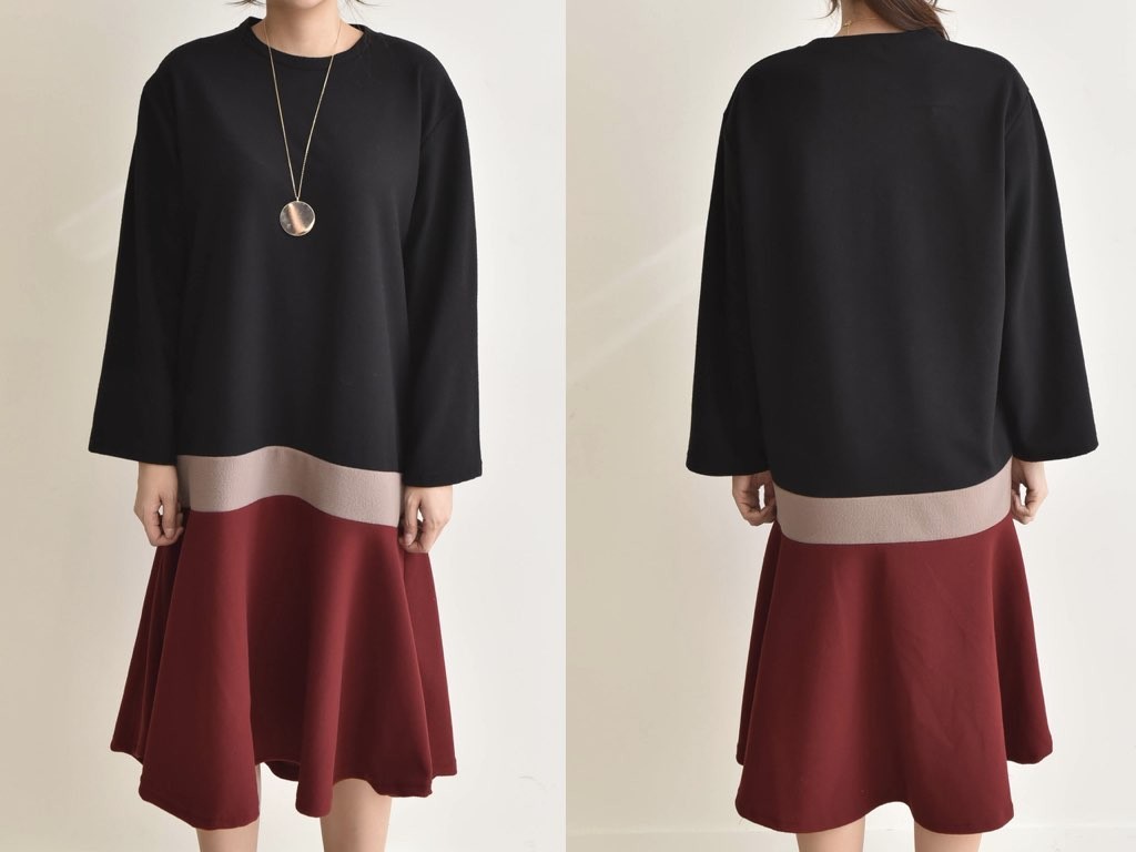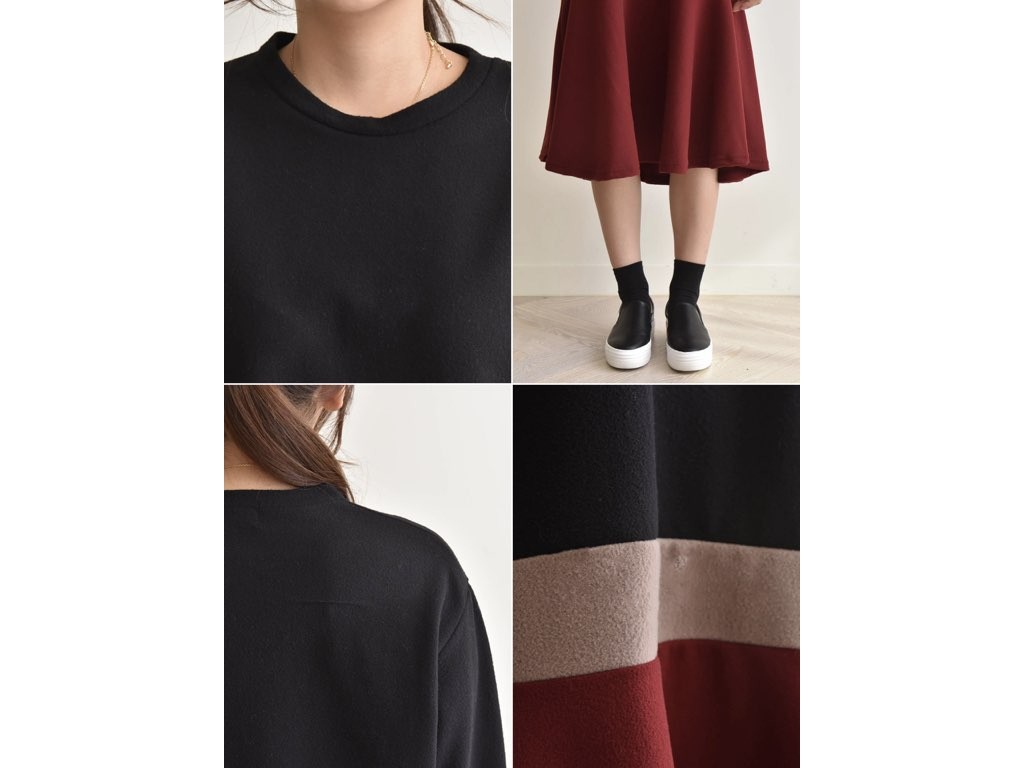切返しが特徴的な「ふわっふわ」としたワンピースです。とても丁寧なつくりとなっており、ゆったりと着ることができます。1.基本情報色:ネイビーxグリーン、ブラックxレッドサイズ:Free素材:ポリエステル95%、スパン5%製造国:Korea2.サイズ情報肩幅:47cm 身幅(胸断面):56cm 腕の長さ:52cm 着丈:108cm(サイズは計る方法に応じて±2〜3cmの誤差があります。ご了承お願い致します)モデル着用サイズ:F※着用モデル(163cm、体重47kg、足のサイズ245mm)3.その他の情報厚み:中間透け感:なし伸縮性:中間裏地:なし(表面起毛)洗濯方法:洗濯お取り寄せ商品は、納品まで約10日前後いただきます。ご了承お願い致します。