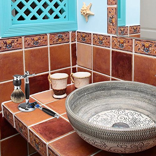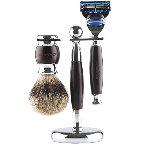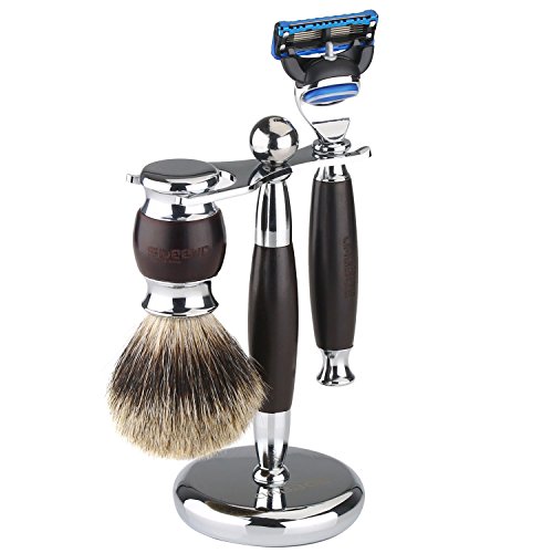 Shaving Set,Anbbas 3in1 Super Badger Hair Shaving Brush and Razor Stand Holder 6.1",Manual Shaving Cartridge Razor Handle Kit for Men Wet Shave,Alloy...