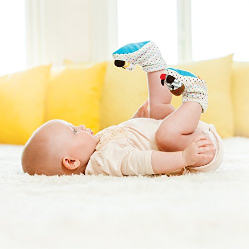Fun footsy friends encourage little ones to shake, reach and grab. Great for developing hand-eye coordination.