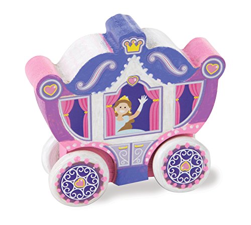 Includes wooden princess carriage, 4 wheels, 2 axles, 24 stickers, 4 pots of paint, paintbrush, and glue
