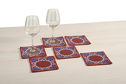 Digitally Printed Pure Cotton Canvas Set Of 6 Drink And Beverage Coasters Square 5 X 5 Inch ,Cos-107,