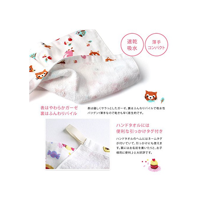 【핸드 타올 9 매세트】생산지:일본(센슈 타올) 소재:면100% 사이즈:약34×34cm 무늬:쁘띠무늬(시로쿠마(백곰),《오마메》,무당벌레,제비,딸기,클로버)고, 소녀무늬(간식,리본,동물) 세트 내용:핸드 타올 6매(6병)