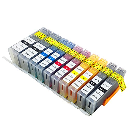 Included in Box 2 Compatible PGI-250XL Black Ink Cartridges 2 Compatible CLI-251XL Black Ink Cartridges 2 Compatible CLI-251XL Cyan Ink Cartridges 2 Compatible CLI-251XL Magenta Ink Cartridges 2 Compatible CLI-251XL Yellow Ink Cartridges For use with following Canon printers. PIXMA iP7220 PIXMA iP8720 PIXMA iX6820 PIXMA MG5420 PIXMA MG5422 PIXMA MG5520 PIXMA MG5522 PIXMA MG5620 PIXMA MG6320 PIXMA MG6420 PIXMA MG6620 PIXMA MG7120 PIXMA MG7520 PIXMA MX722 PIXMA MX922 For your information 1. If something comes up upon the ink cartridges' arrival, contact us for a solution instead of leaving an upset review. 2. If your printer prompts a message like 'Non-Original Cartridge' or 'Not Genuine Cartridge', please just ignore that and press 'Continue', 'OK' or 'Yes' to finish installation. 3. If some cartridge can't be recognized by your printer, take it out and wipe the cartridge chip with an eraser or paper napkin.