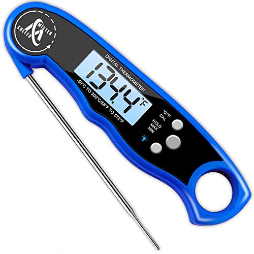 Waterproof Instant Read Thermometer - Best Digital Meat Thermometer - Electric Food Thermometer with Calibration and Backlight functions for Candy Turkey Milk Tea BBQ Grill Steak