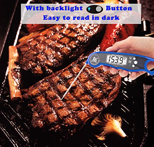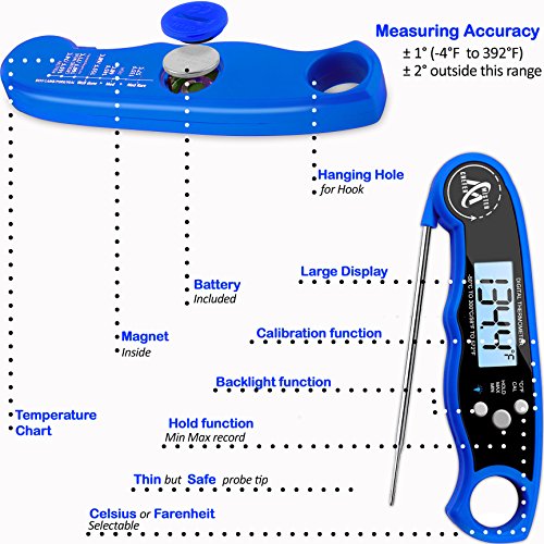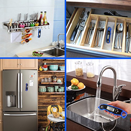 - ✅CONVENIENT IN USING - With this meat thermometer you can get the temperature at any time with the backlight button. The cooking thermometer inside has a magnet, so it can easily be attached to the refrigerator, also it can be hung on the hook. A waterproof food thermometer can be washed easily without fear that water gets inside.