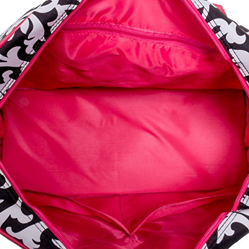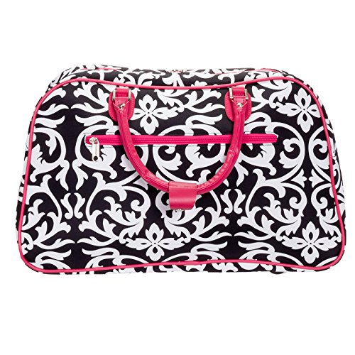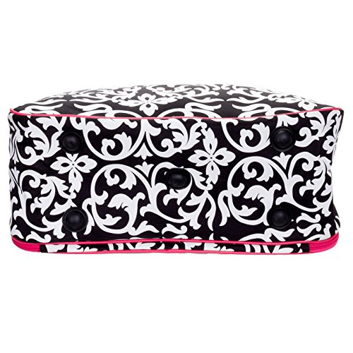 -. Title : World Traveler Damask Travel Bag, Black and White with Pink Trim