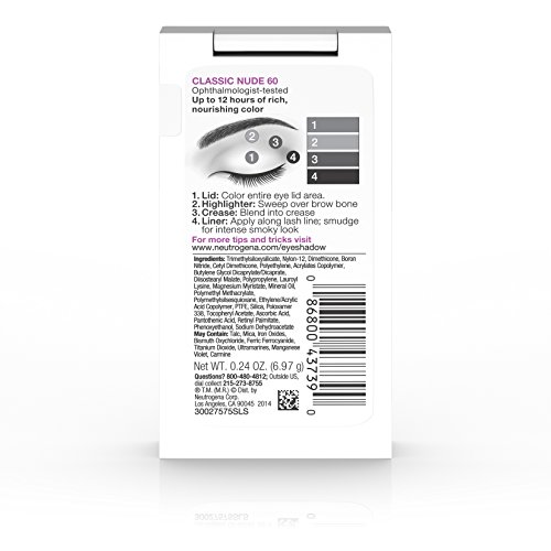 Use Neutrogena Nourishing Long Wear Eye Shadow + Built-in Primer to enjoy up to 12 hours of rich, nourishing eye shadow color. This eye makeup features built-in eyelid primer that helps prevent creasing and smudging for beautiful eye shadow color that lasts. The formula is infused with vitamins and skin-nourishing conditioners for the delicate eye area. This eye primer is ophthalmologist tested and safe for sensitive eyes.Feature