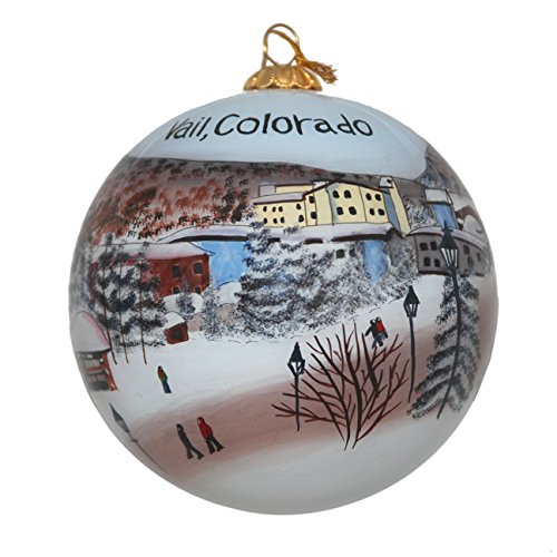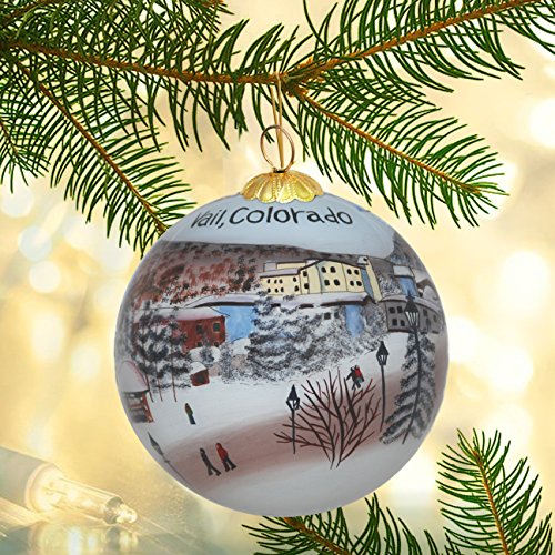 Hand Painted Glass Christmas Ornament - Vail, Colorado – 6” Large Bulb