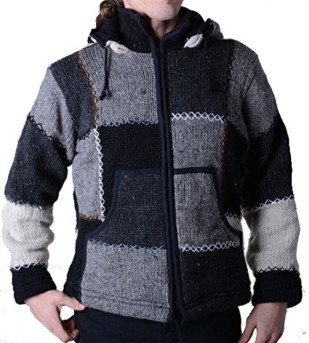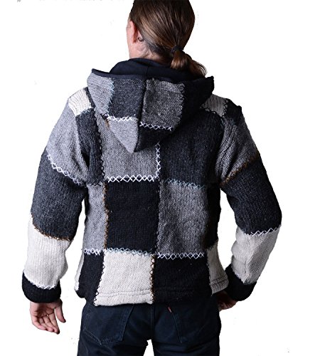 -. Feature : Patchwork Wolljacke mit abnehmbarer Kapuze / 2 Kängurutaschen, 1 Innentasche / Absolut wintertauglich / Made in Nepal / Aus fairem Handel