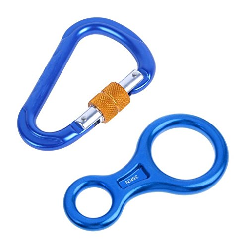 Description: 35KN Figure 8 design belay device and 25KN D-Shape screw locking climbing carabiner The carabiner with non slip screw nut, more safety Fast and easy loading other belay/descender equipment Firm and durable, lightweight and portable to carry Fit for rock climbing, mountaineering, rappelling, caving, exploring, rescue, engineering protection, aerial work etc Material: Aluminium Magnesium Alloy Color: Blue With CE certification Figure 8 Belay Device: Offers a smooth rappel with minimal impact on the rope Tension: 35KN Size (LxW): Approx. 14.4x7.4 cm/5.67x2.91 inch Large ring inner diameter: Approx. 5.2 cm/2.05 inch Small ring inner diameter: Approx. 2.6cm/1.02 inch Suitable Rope: for rope diameters 8-12 mm/0.31-0.47 inch