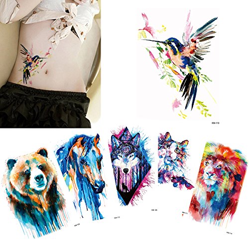 -. Title : 6 Pieces Colored Drawing Body Tattoo Temporary Arm Chest Waist Art Bear Cat Sticker Design