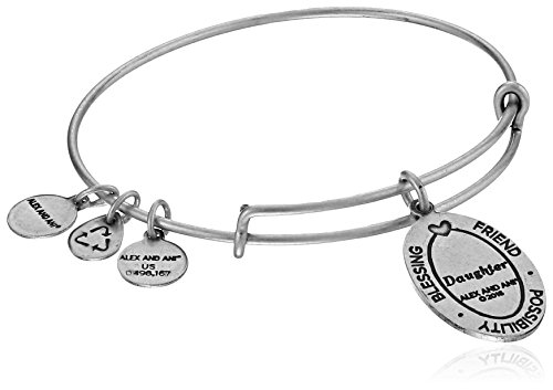 Expandable wire bracelet featuring oval "Daughter" charm with floral pattern at front and "Blessing Friend Possibility" at back